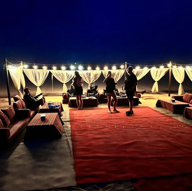 Desert Oasis - For those really looking for privacy, then let us create your own little oasis in the desert. For groups of 10 up to 200 we can create an amazing venue out in the dunes where you can enjoy the sunset, have a bird of prey display, camel riding along with your own desert evening party with fully stock bar, fantastic food and live entertainment.